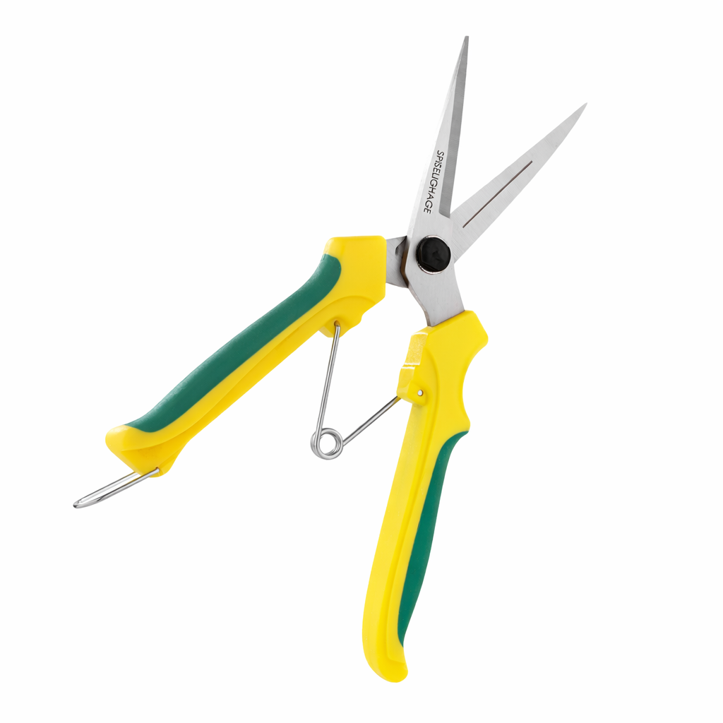 Denne lette og presise plantesaksen er utviklet for detaljarbeid i hagen. Den er perfekt når du skal høste urter, klippe salat, beskjære små skudd eller forme planter med nøyaktighet. De smale, skarpe stålbladene gir rene og presise kutt uten å skade planten unødvendig. Dette fremmer rask tilheling og sunn videre vekst. Saksen egner seg spesielt godt til urter, chili, tomater, små blomsterstilker og myke skudd. Den ergonomiske utformingen med sklisikkert grep gir god kontroll og komfort, selv ved lengre arbeidsøkter. Den lette fjærmekanismen sørger for myk og effektiv åpning etter hvert klipp, mens låsebøylen gjør den trygg å oppbevare når den ikke er i bruk.